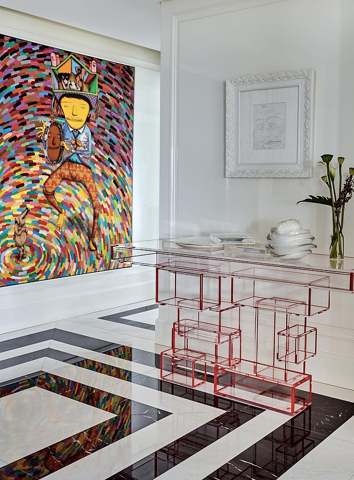 “Antes, eu pensava primeiro nos móveis”, ele explica. “Agora, a arte entra junto, ou até antes. Descobri que tudo flui de forma mais natural assim.”