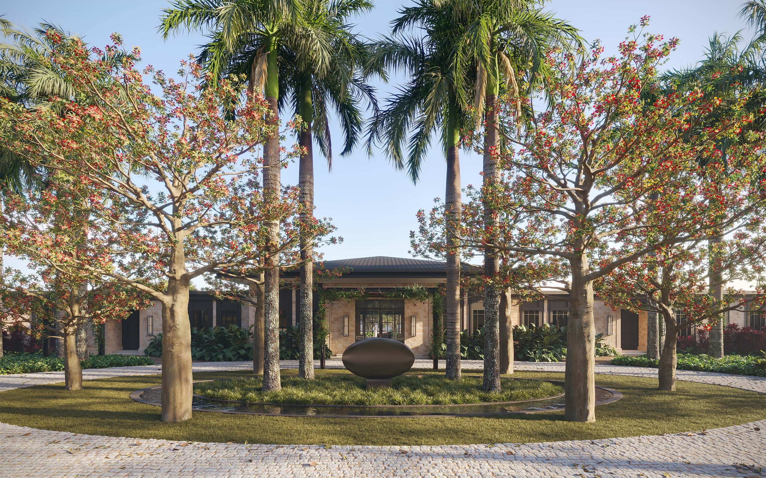 Located in Fazenda Boa Vista, an exclusive residential enclave in the countryside of São Paulo, Vila Prado was designed for a traditional São Paulo family as a weekend retreat that balances comfort, elegance, and informality. Conceived as a house for hosting and gathering, the project integrates architecture and interiors into a cohesive whole, resulting in a residence that expresses a relaxed and timeless sophistication. The design draws inspiration from natural materials, earthy tones, and a restrained palette of black, brown, and neutral hues. The Aman New York Hotel served as a key reference for the client, influencing the atmosphere of calm, discretion, and refinement that guides the spatial and material choices throughout the project. With 2,100 square meters distributed on a single level, the house unfolds around a central courtyard that accommodates the swimming pool, fire pit, and principal social areas. This open core organizes the daily life of the residence and reinforces the connection between architecture, landscape, and use. Three independent bungalows surround the courtyard: a master bungalow, a family and guests bungalow, and a guest bungalow, together comprising eight suites. These volumes are connected by a bamboo-lined gallery that creates a gentle transition between spaces and strengthens the continuity with the surrounding landscape. The main structure linking the bungalows houses the primary social areas of the residence, consolidating living, dining, and gathering spaces into a central pavilion designed for conviviality and extended use.