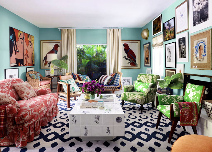O chalé de Sig Bergamin em Miami Beach é uma autêntica sinfonia cromática.